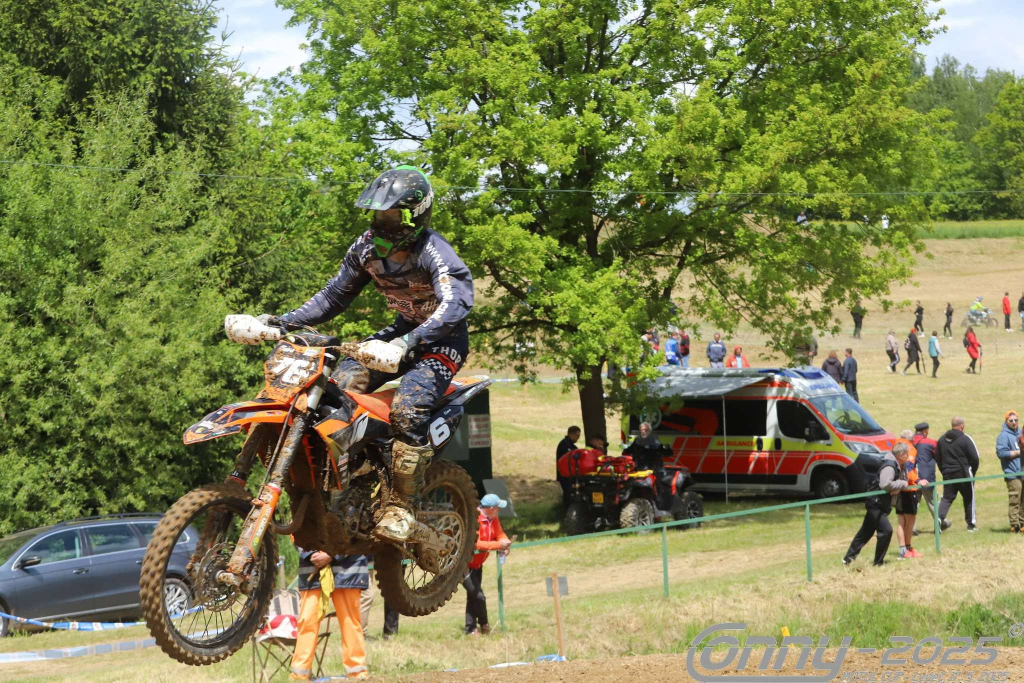 Start v první závodní rozjížďce mi vyšel a první polovinu jízdy na vysychající, ale stále blátivé trati jsem se držel v top 5. V druhé polovině závodu jsem začal dělat drobné chyby, což mě stálo ještě jednu pozici.