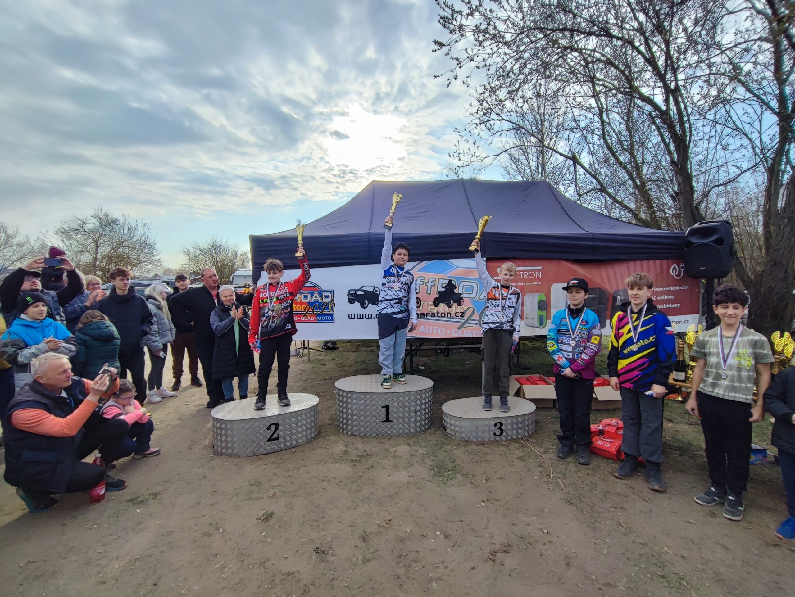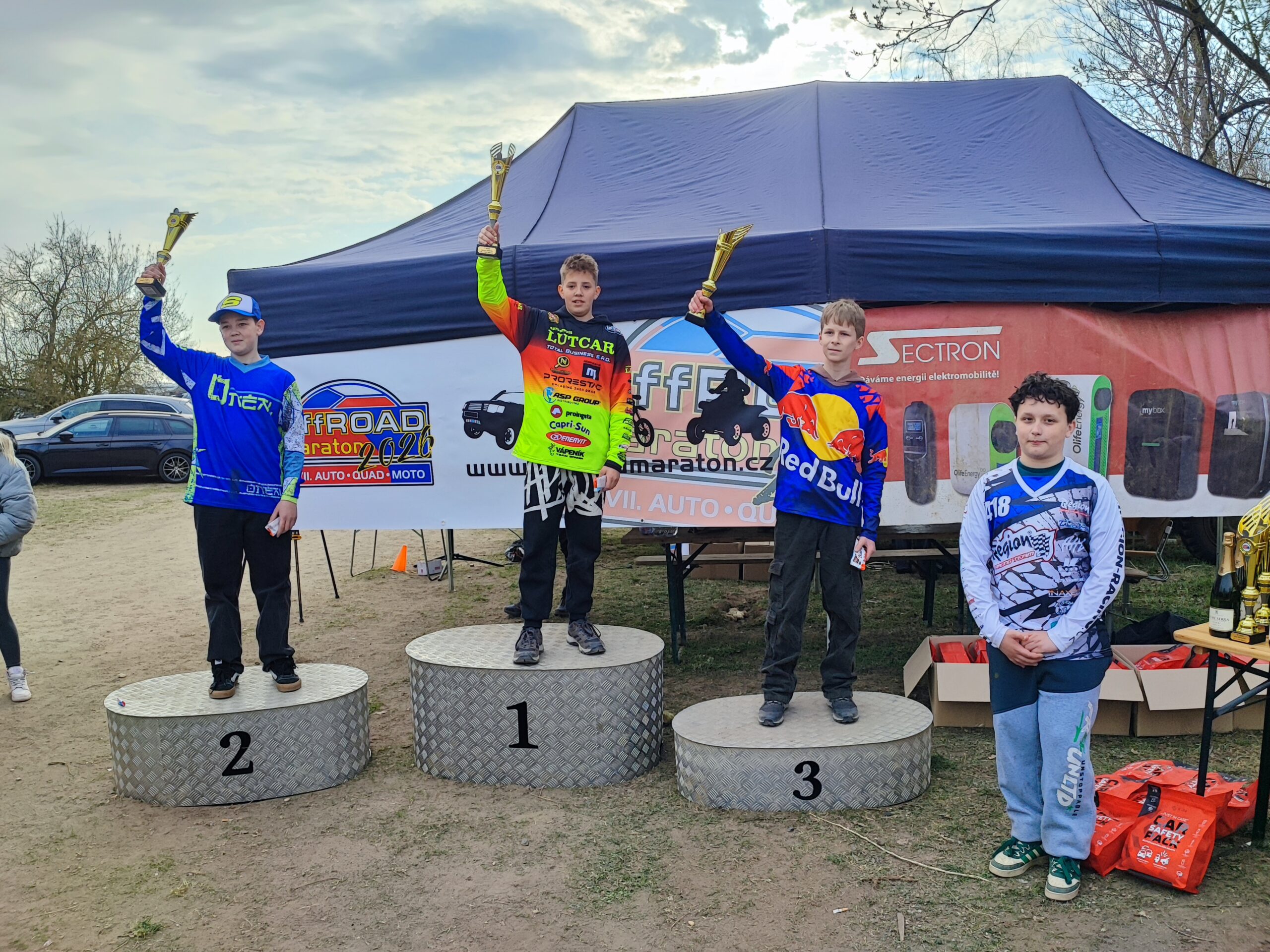 Jako první jsem nastoupil v kategorii Junior starší, která byla vypsaná na 60 minut a trať měřila cca 6 km. Po výborném startu jsem byl na 1. místě, ale to jsem udržel jen asi půl kola a začali mě předjíždět jezdci s většíma motorkama, tak jsem se propadl na 3. místo. To jsem držel do poloviny závodu, ale pak jsem musel natankovat a ztratil tím dvě pozice. Do konce závodu jsem stihl ještě stáhnout jedno místo. Celkově jsem dojel na 4. místě.
