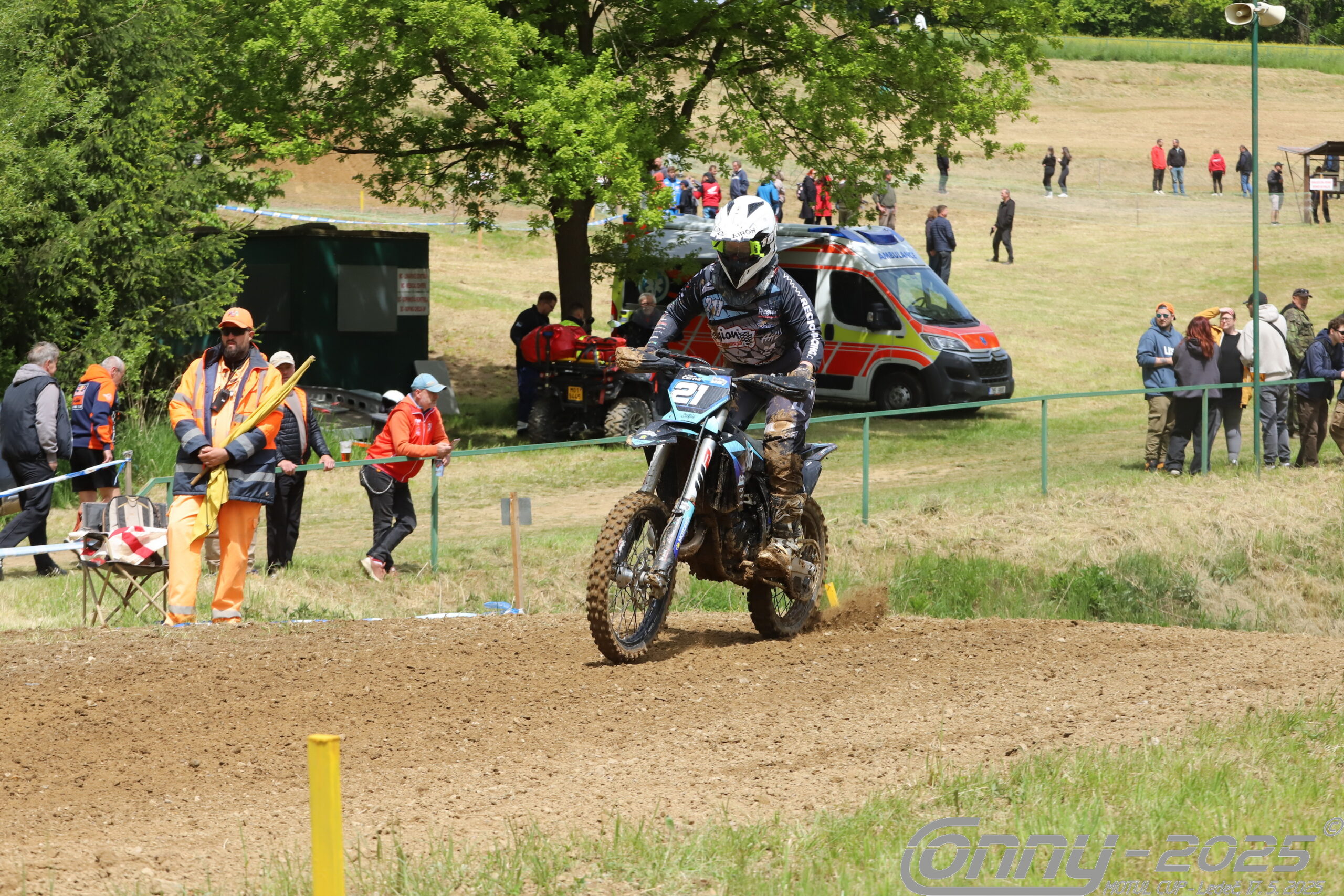 Startovala jsem v kategorii Hobby MX2, konkrétně Hobby MX2 Woman, takže jsme celý den jezdili jako první, a to se mi stalo osudným. První trénink byl luxusní, trať mokřejší, ale měla jsem vidinu idoše na kvaldu. To se ale nestalo, jelikož před námi hasiči s cisternou projeli celou trať, a tak jsem dost plavala. Aby toho nebylo málo, během kvaldy jsem se tak 4x vyválela, takže jsem nezajela ani jeden dobrý čas.