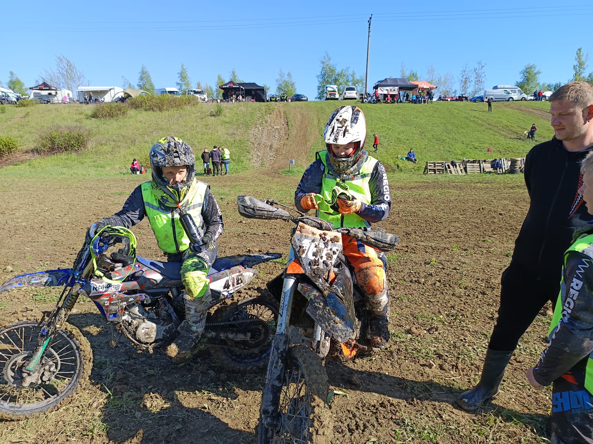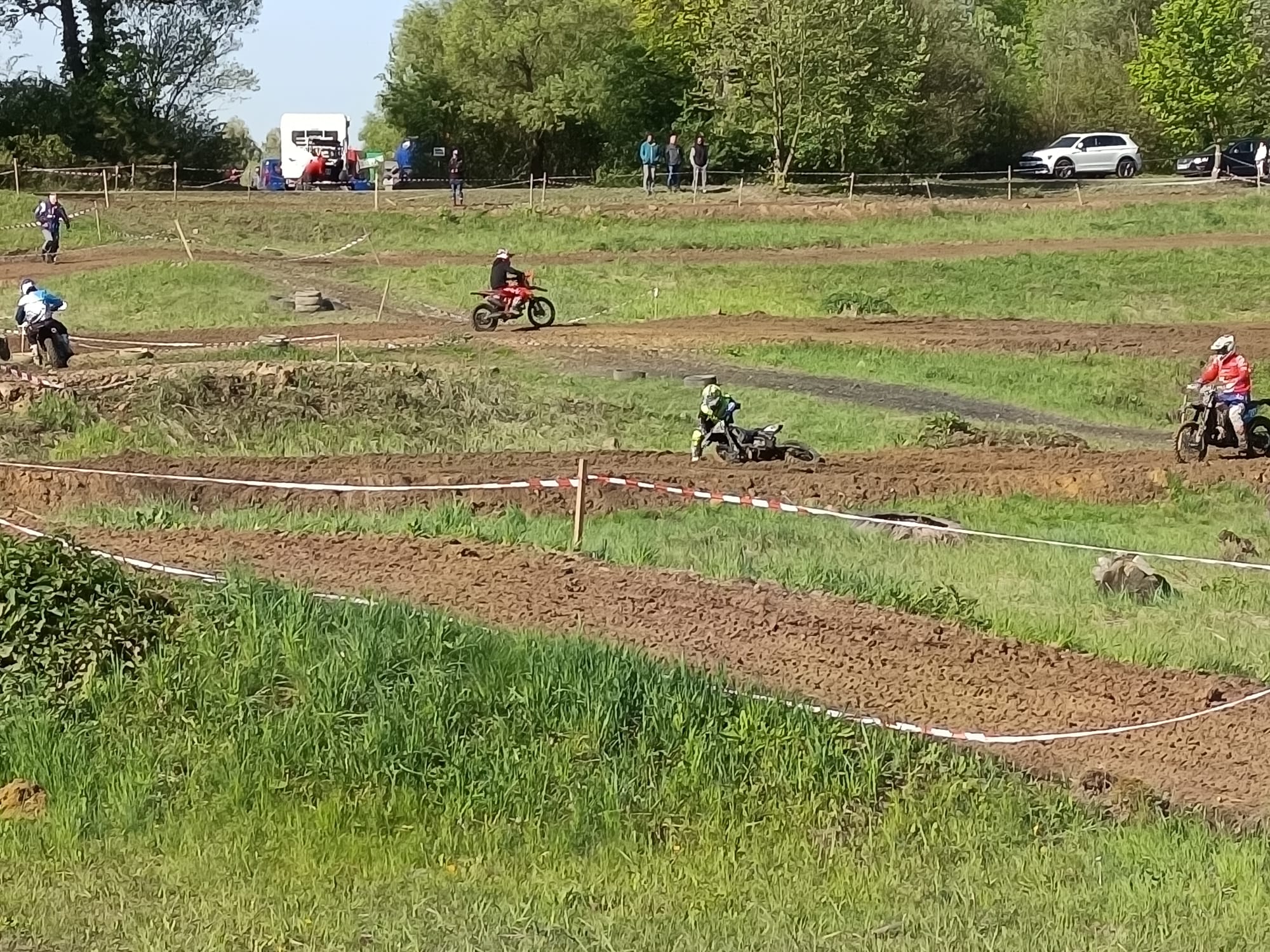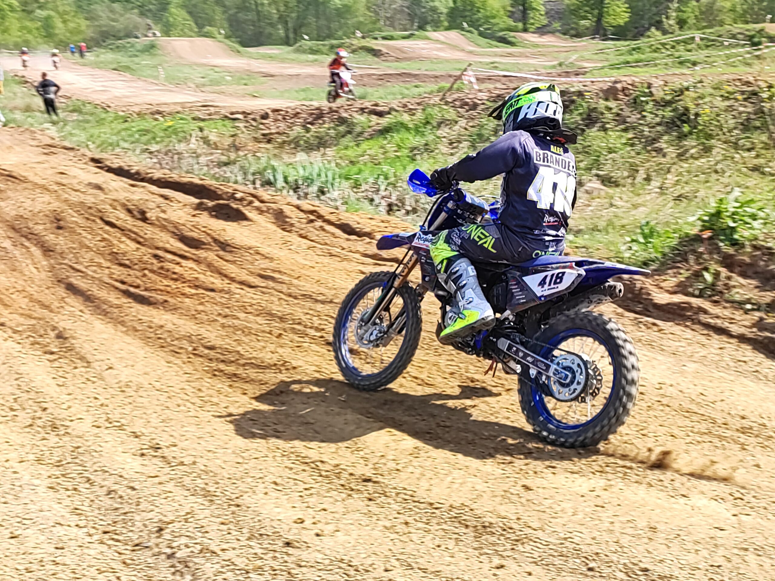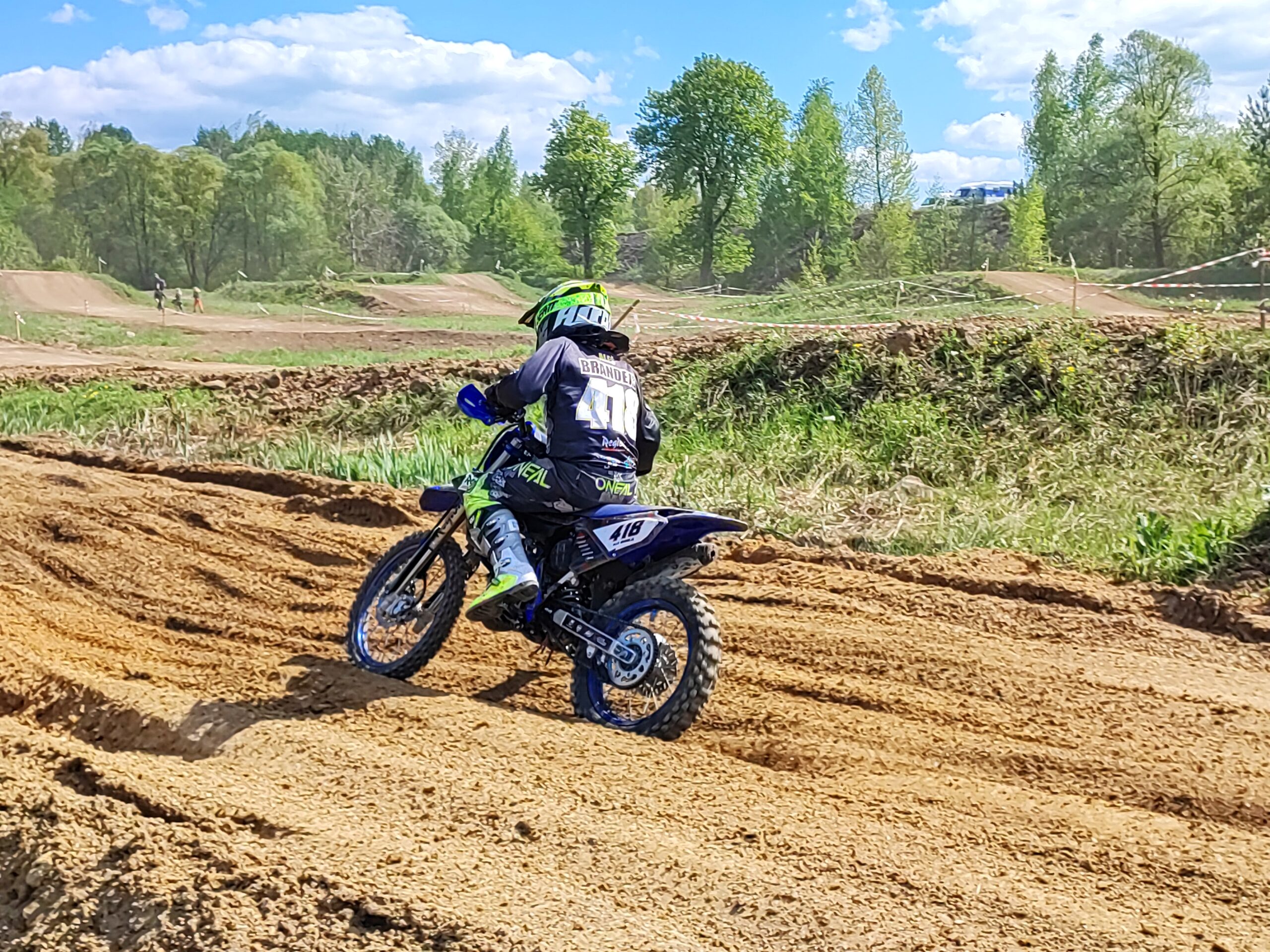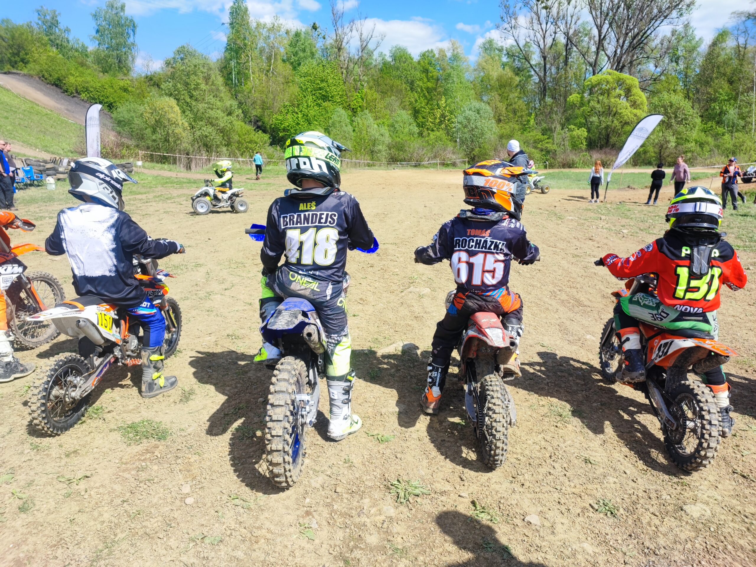 Startoval jsem také v kategorii Junior mladší (8-12let). Tento závod začínal až odpoledne, takže páteční déšť už nebyl na trati znát. Trať začínala prášil a byla poměrně dost rozbitá po předešlých kategoriích.