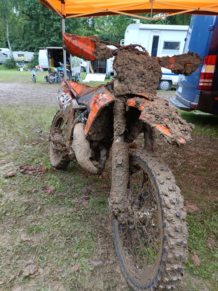 Start do první rundy nebyl špatný, ale i tak jsem dostal velkou nálož bláta. Taky jsem si dvakrát ustlal, ale to snad každý, kdo na trati byl. Druhé jízdy byly pro nesjízdnost trati zrušeny. Celkově jsem obsadil 2. místo.