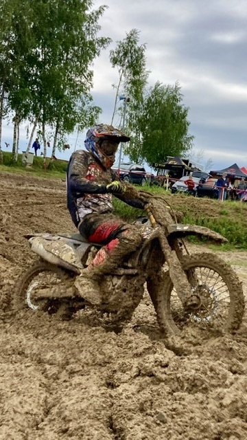 Start první jízdy se povedl a já jel na 3. místě. Asi ve druhém kole mě předjel jeden soupeř a tak jsem jel čtvrtý. Asi i díky stavu tratě jsme měli docela náskok, a tak jsem si mohl jet v klidu. Jezdec, který mě předjel, udělal chybu a já se dostal zpátky na trojku za Matese Bocka. Jelikož si držel ideální stopu, tak jsem si nechal odstup a dojel třetí.