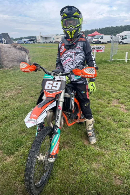 9. 8. jsem se zúčastnil MX závodu v Kostelci nad Černými lesy. V pátek jsme dorazili do depa a já jsem se šel hnedka kouknout na trať. Zdálo se mi, že má perfektní povrch, na kterém se mi dobře jezdí. V sobotu bylo krásné počasí. Hned měřený trénink se mi jel dobře, ale byla tu velká konkurence z českého mistráku. Jakmile jsem však dojel, začalo se mi dělat špatně. Celý den mi pak bylo nevolno, ale stejně jsem šel do závodu.