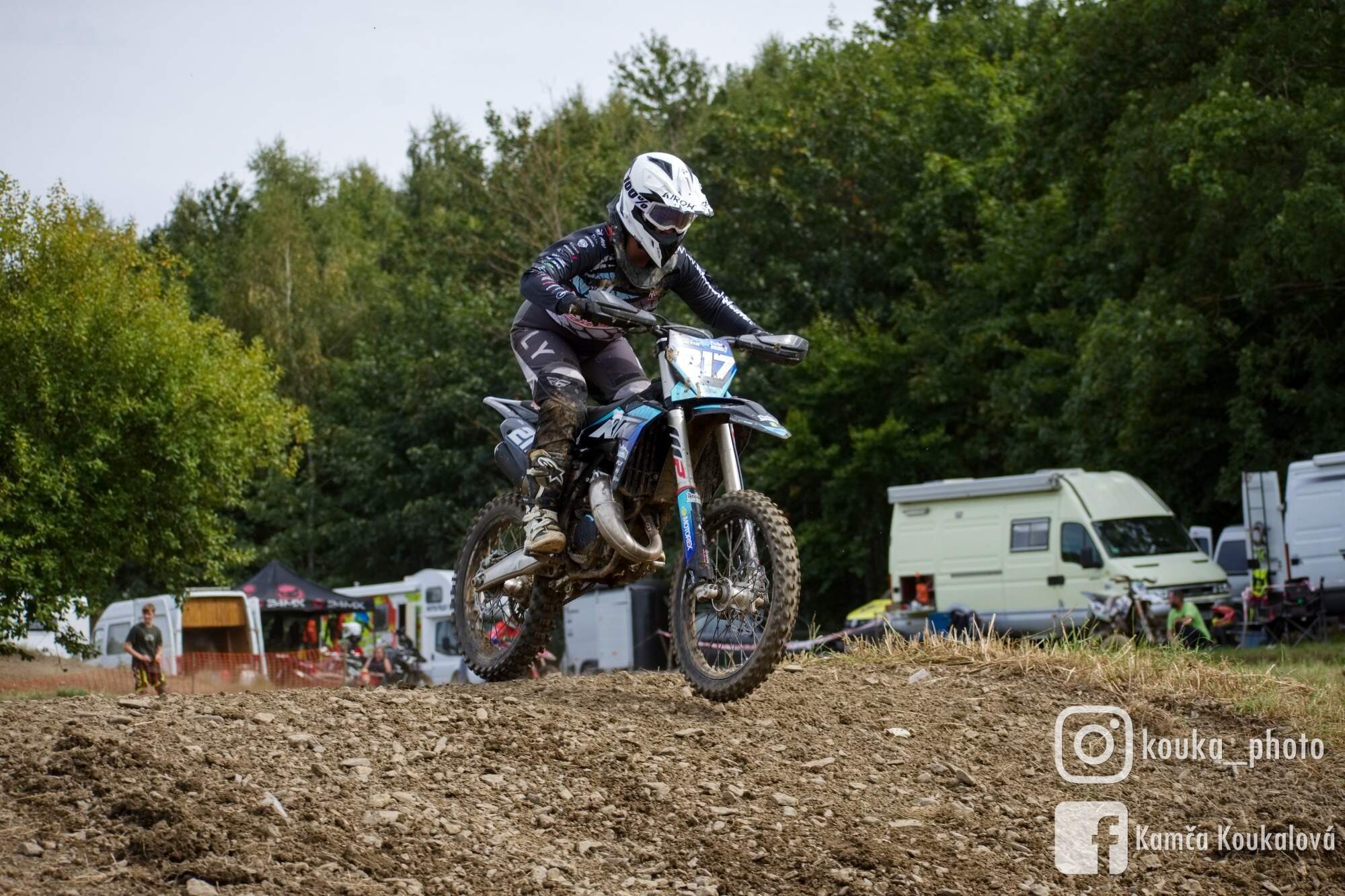 Na start bych najížděla 6. z holek, ale jeli jsme spojení s veterány, takže jsem najížděla asi z 15. místa. Start do první rozjížďky byl bída. Startovala jsem z dost mokrého místa a nemohla chytit tempo. Nakonec se mi povedlo 6. místo obhájit a dojet tak do cíle. Druhá rozjížďka byla srovnatelná s první s tím rozdílem, že už byla trať místy dost rozbitá.