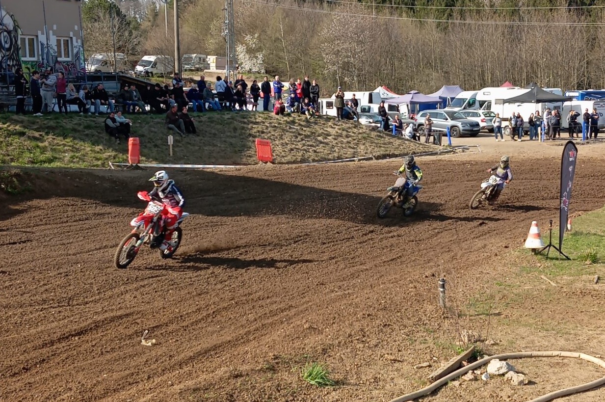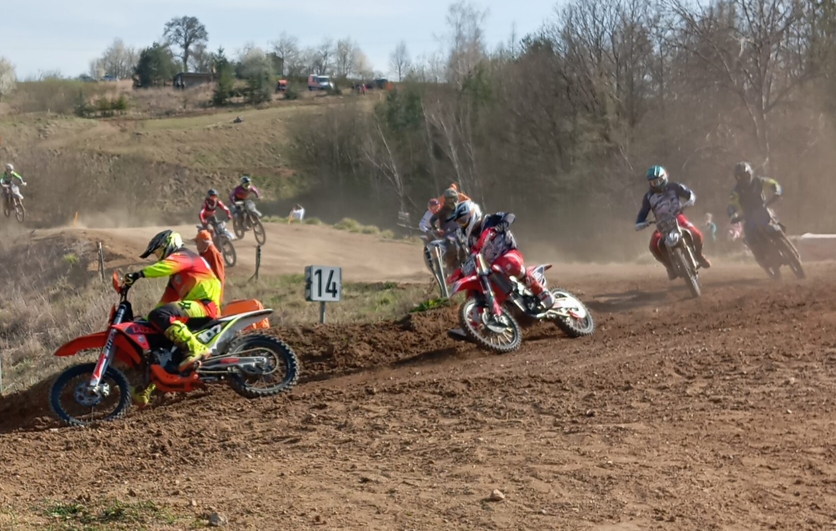 Start do první rozjížďky se mi povedl a v první zatáčce jsem se pohyboval na 3. – 4. pozici. Nicméně hned po této zatáčce mě doslova sejmul pilot jedoucí vedle mě a bylo z toho slušné salto přes řídítka a naražená záda. Sice jsem se sebral a vyrazil do závodu, ale měl jsem ohnutou páčku spojky a řídítka nakřivo, tak to nebylo ideální. Vyrazil jsem úplně poslední s obrovskou ztrátou. Táta mě chtěl zastavit, ať se na to vykašlu, ale začal jsem tahat a nakonec hodně pilotů předjel a skončil myslím na 17. pozici. Alespoň jsem si trénoval předjížděcí manévry. Dotyčný pilot byl alespoň natolik seriózní a přišel se mi po závodu omluvit. Čehož jsem si nesmírně vážil. Měl novou motorku a bohužel byla naprosto zdevastovaná …