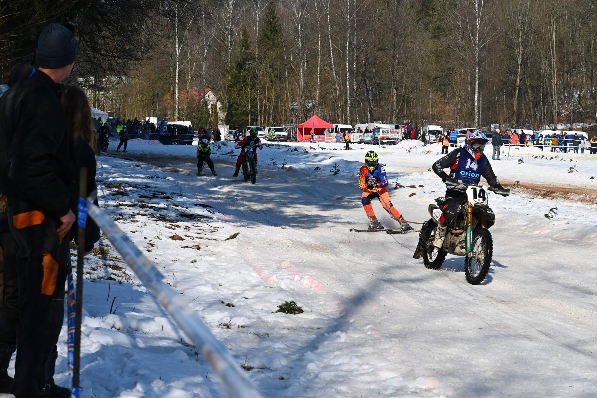 Na úplný závěr zimy se nakonec pořádal třetí závod motoskijöringu. Trať byla z mínusových teplot z předchozího týdne promrzlá, a tak jsem s lyžařem Honzou Hunalem nastoupil do závodu.