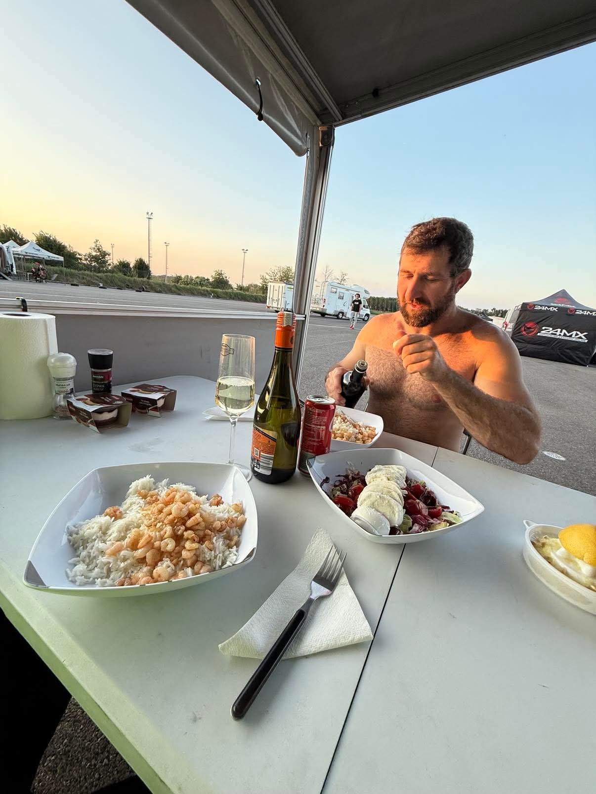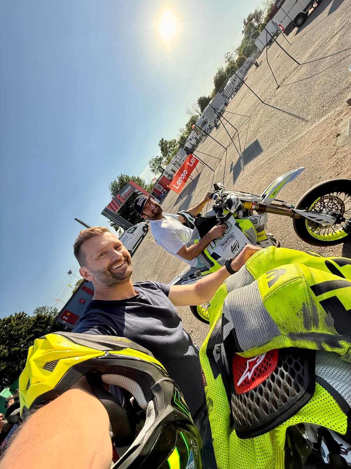 Italské závody nám začaly sobotními tréninky. Tam se mi dařilo. Nejrychlejší jezdec Luca se tréninku neúčastnil. Neděle probíhala tak, jak bych si to představoval na MMČR, a to tak, že byly celkem tři vstupy na trať. Pneumatiky byly plombované a pilot měl tedy k dispozici na celý den pouze jednu sadu. Sada byla plombovaná z pravé strany a pneumatiky nešly ani otočit. Odpadly nám tedy starosti s přezouváním.