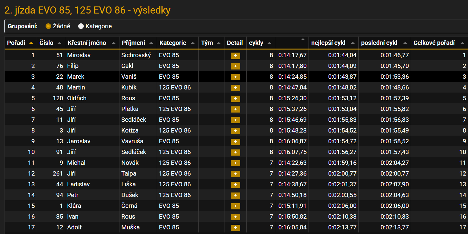 Celkově tedy dvakrát druhé místo (44 b.) stačilo na celkové 3. místo, soupeři měli po 45 bodech a jim rozhodla druhá rozjížďka.