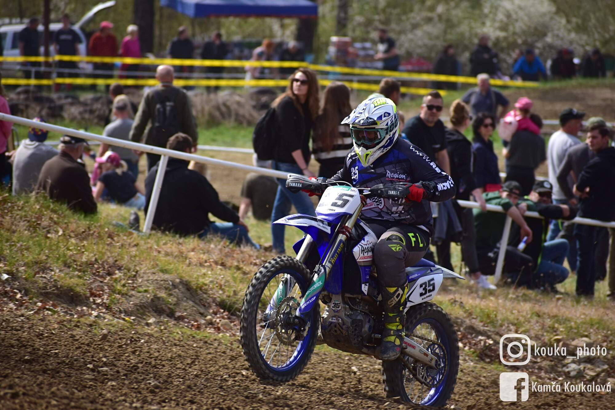 Třemošnice je taková klasika – ani dobrá, ani špatná. Ale na závody tam jezdím rád a pořadatelé se vždy snaží, tak jsem se těšil. Z motárdů se utrhnul i Erik, který přijel s tátou, kterému chci poděkovat za celý den fandění. Sešlo se nás skoro třicet, a tak jsem se moc těšil na závod. Trénink a kvalda byly v pohodě a vyjel jsem si 4. místo, takže pohoda.