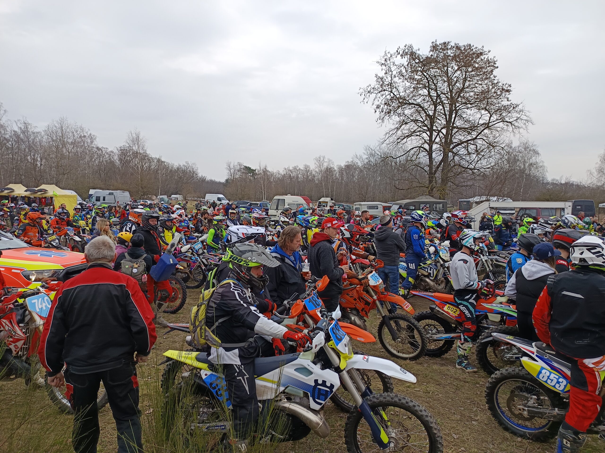 Jako první startovalo hejno čtyřkolek a podle toho vypadala trať před startem motorek. Motorek se na startu sešlo cca 300 napříč všemi kategoriemi. Já se přihlásil do Starších Juniorů, kde se na start postavilo 13 borců.