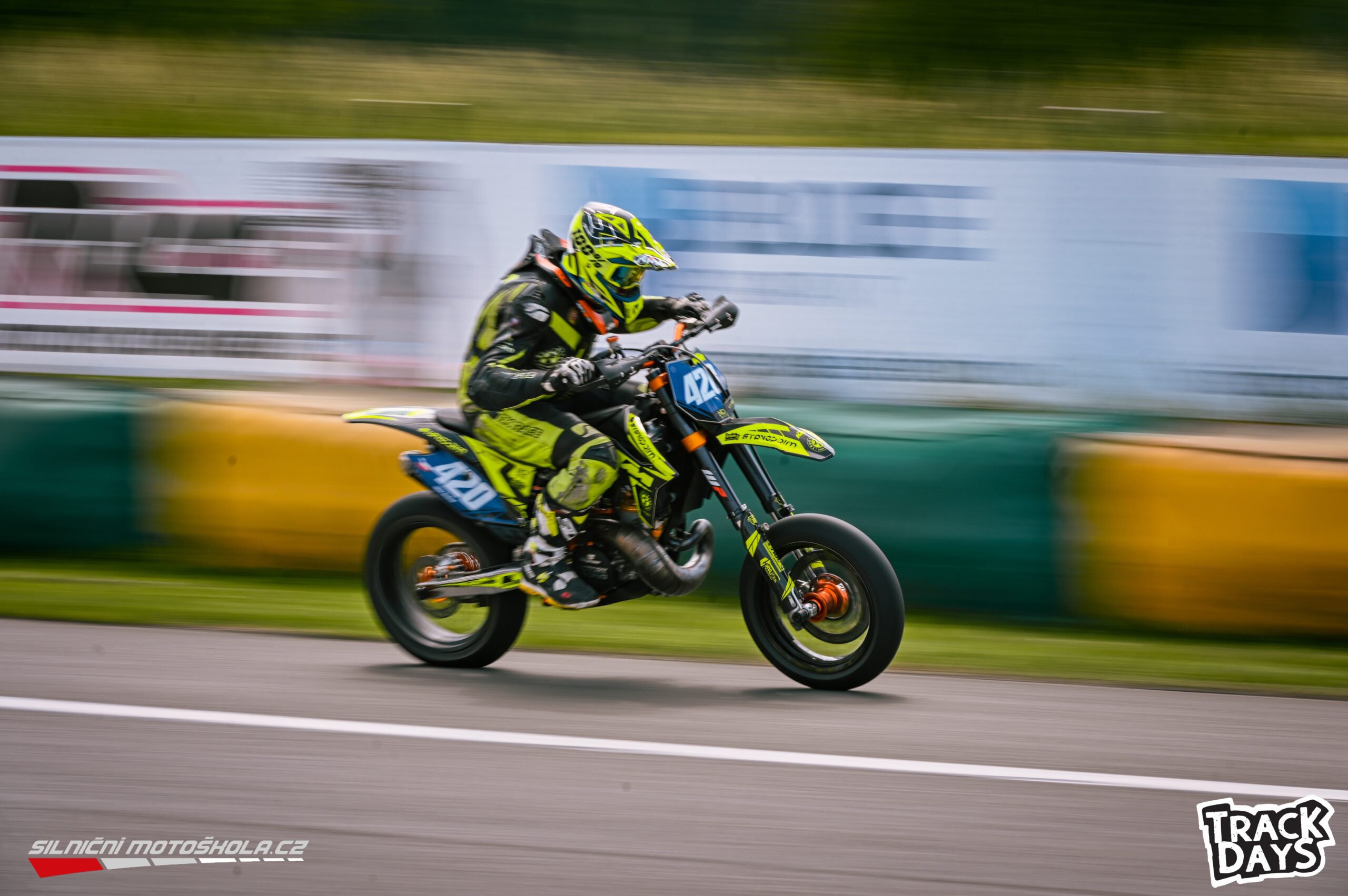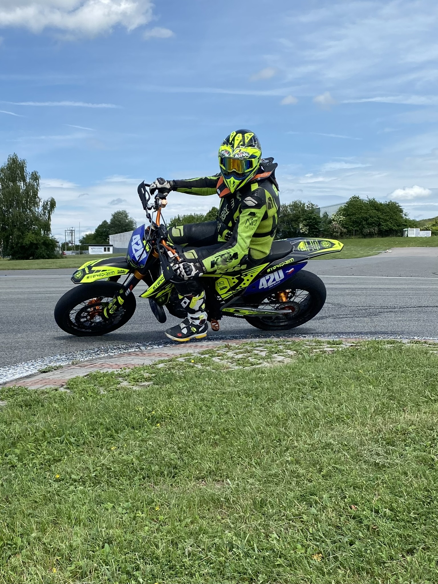První rozjížďka se ale neobešla bez karambolu, kdy mi ve třetí zatáčce spadl jeden z jezdců pod kola a já narazil do jeho stroje. Srážku jsem ustál, ale ztratil spoustu pozic. Zdravě jsem se nas … a začal se prokousávat dopředu. Nakonec to dalo čtyřku v mojí kategorii.
